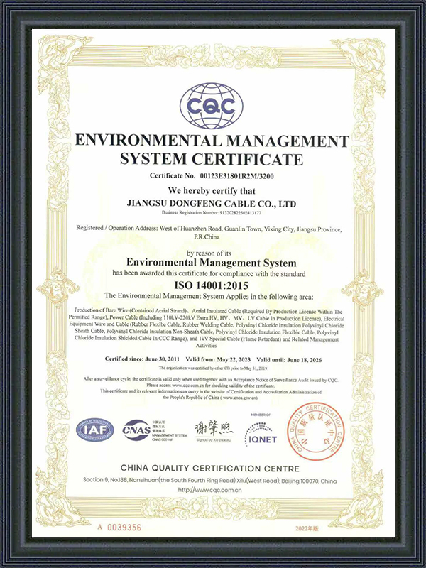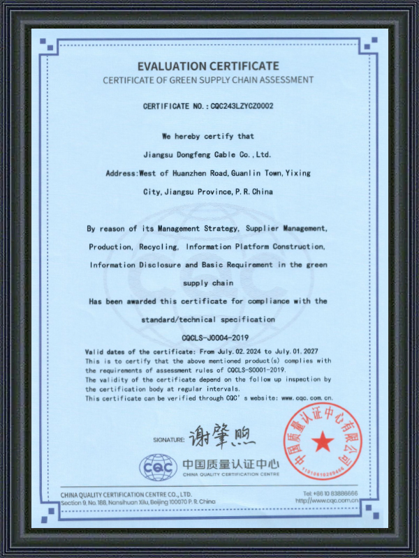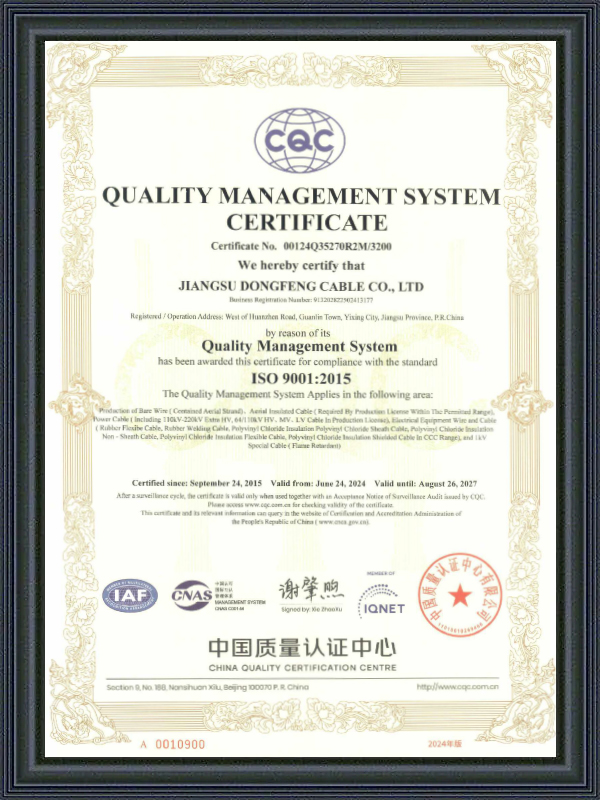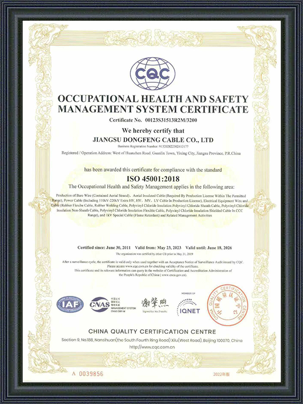 Jiangsu Dongfeng Cable Co., Ltd. blev etableret i 1988. Som Kina Producenter af Ekstra-højspændingskraftkabler og Fabrik af Højspændingskraftkabler er en national højteknologivirksomhed, der integrerer R&D, produktion og salg af forskellige typer ledninger og kabler. Den er blevet vurderet som en ‘National Grøn Fabrik’, ‘Jiangsu Provins Specialiseret, Specialiseret, Innovativ og Ny Virksomhed’, ‘Jiangsu Provins Kvalitets- og Integritetsvirksomhed’, ‘AAA Kreditvirksomhed’, og ‘National Bruger Tilfredsheds Virksomhed’. Vi tilbyder Tilpassede 66-500 kV XLPE Kraftkabler.